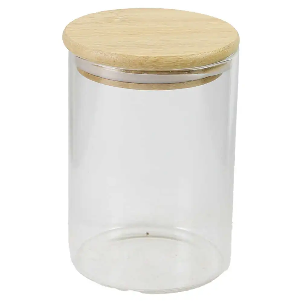 Recipient condimente, din sticla, cu capac bambus 8×12.5 CM