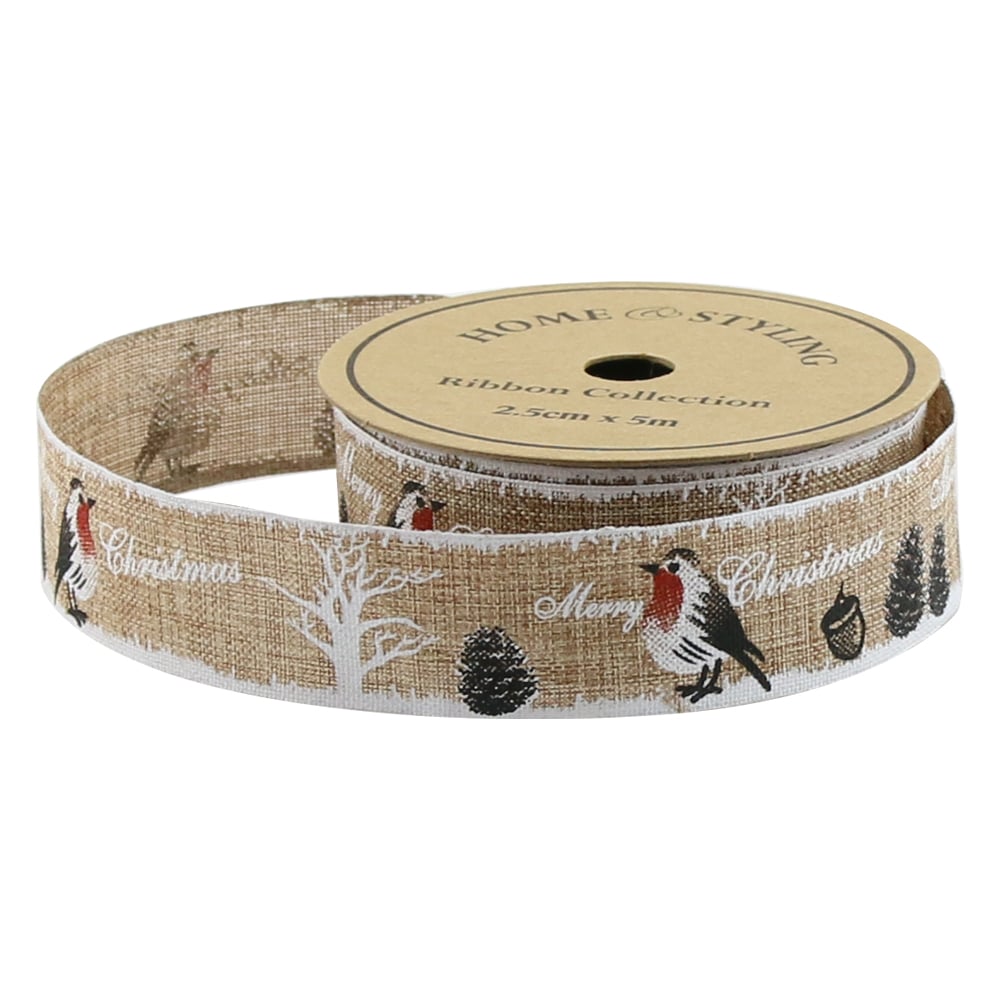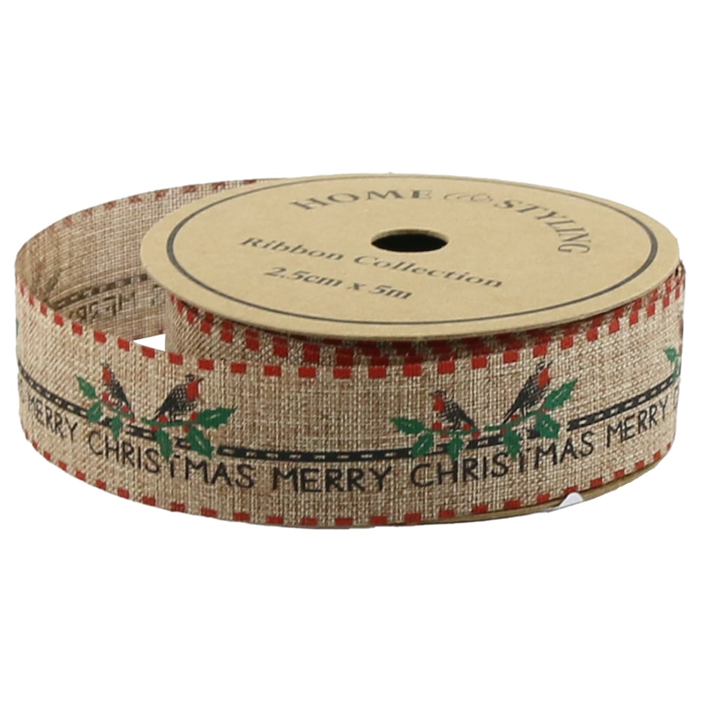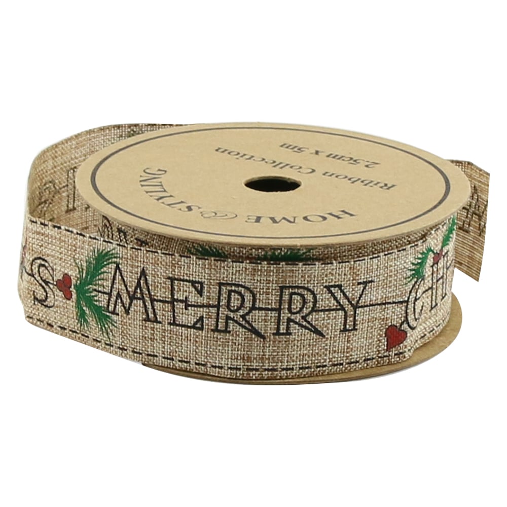 Rola panglica din textil Merry Christmas 2.5×500 CM