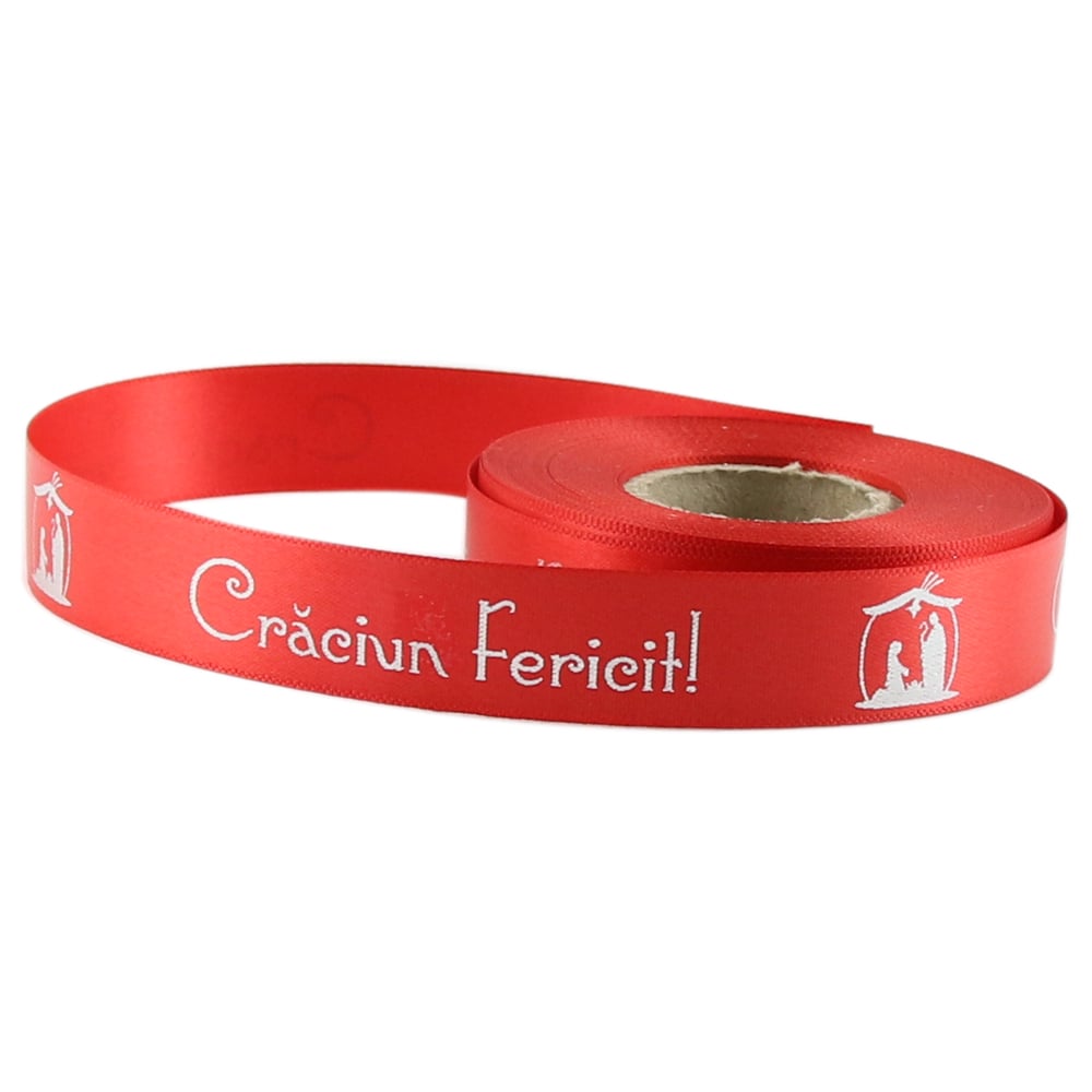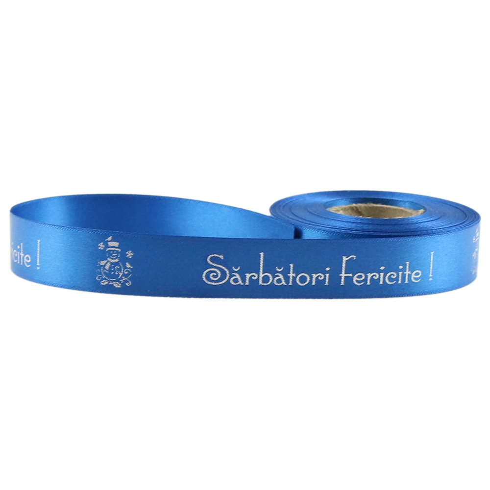 Rola panglica satin 15 m, „Sarbatori Fericite”