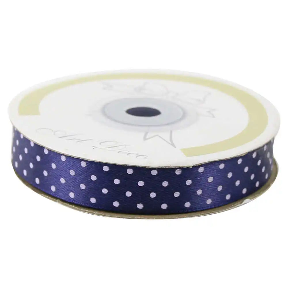 Rola panglica satin 15 mm x 25 m, Albastru cu buline albe, Art Deco