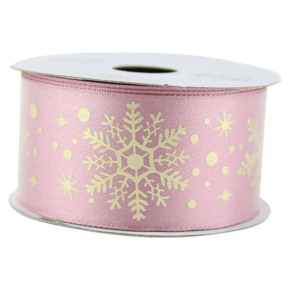 Rola panglica satin cu sarma 38 mm x 6.4 m – Fulgi de nea Pink