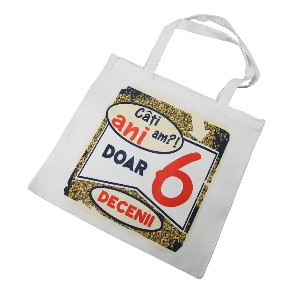 Sacosa textil „Cati ani am?! Doar 6 decenii”, 40×40 CM