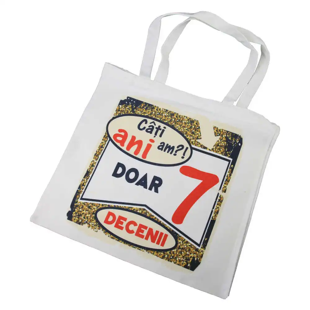 Sacosa textil „Cati ani am?! Doar 7 decenii”, 40×40 CM