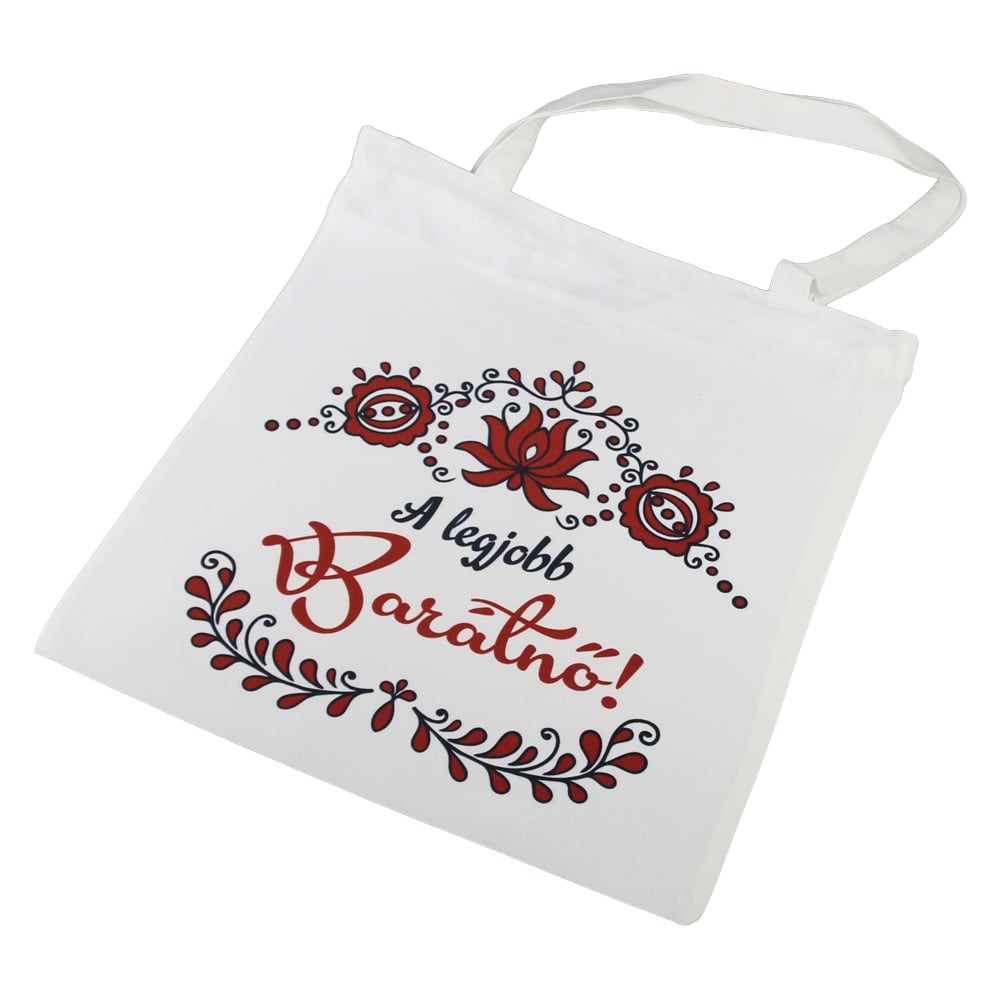 Sacosa textil cu fermoar „A legjobb Baratno!” 36 x 39 cm, motive florale