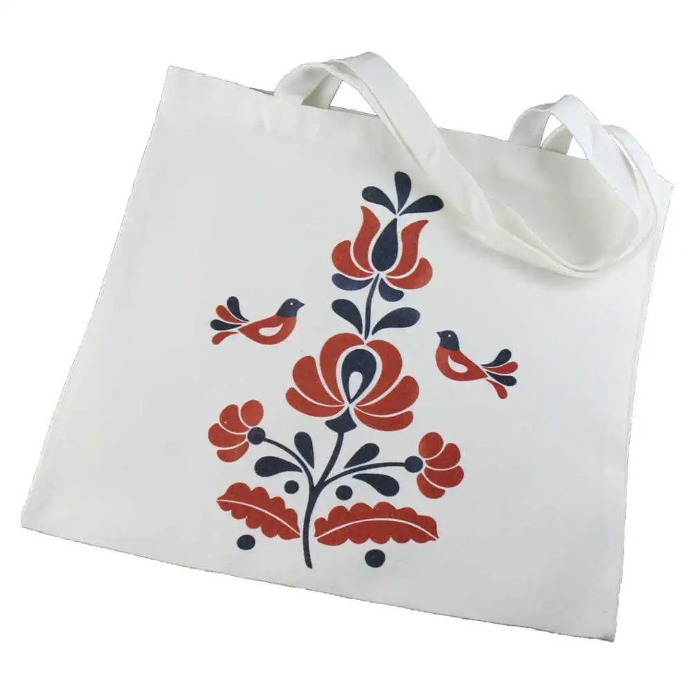 Sacosa textil cu fermoar, motive florale 36 x 39 cm, pasari