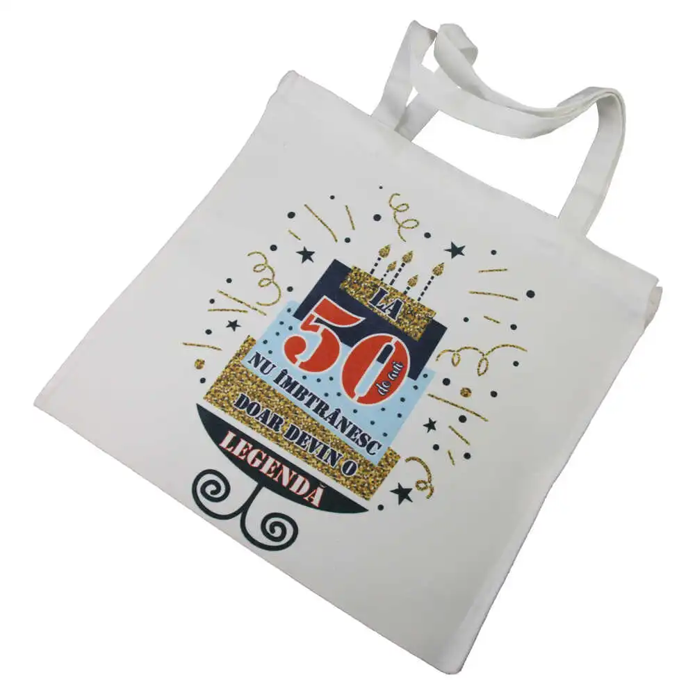 Sacosa textil „La 50 de ani nu imbatranesc, …”, 40×40 CM, tort