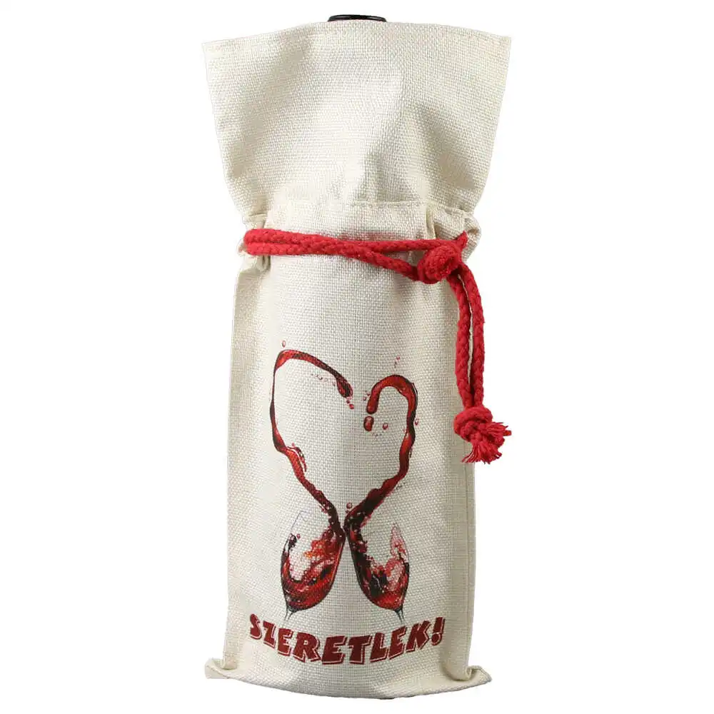 Sacosa textila pentru bauturi „Szeretlek!”, 15×35 cm