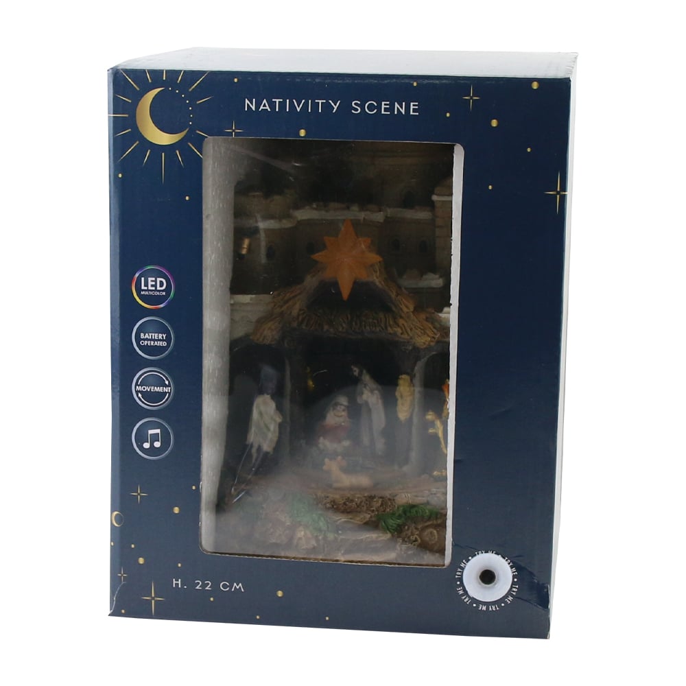 Sceneta de Craciun cu led, muzicala 17×22, Iesle decorativa