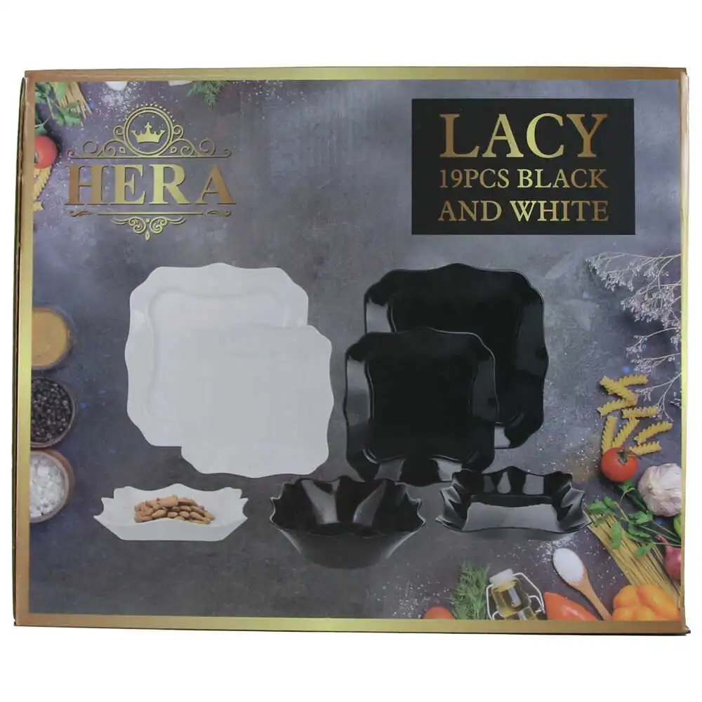 Serviciu de masa din sticla opal, 19 piese, Lacy, Alb/Negru