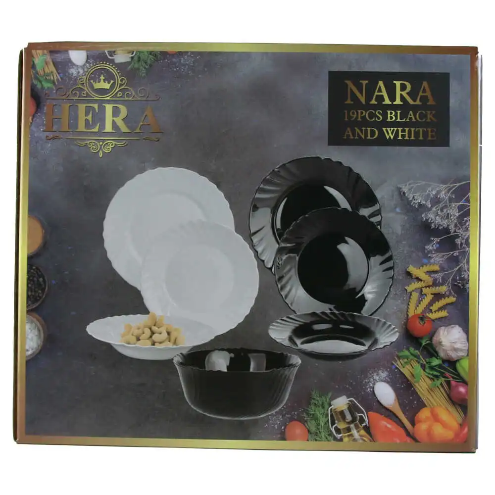 Serviciu de masa din sticla opal, 19 piese, Nara, Alb/Negru