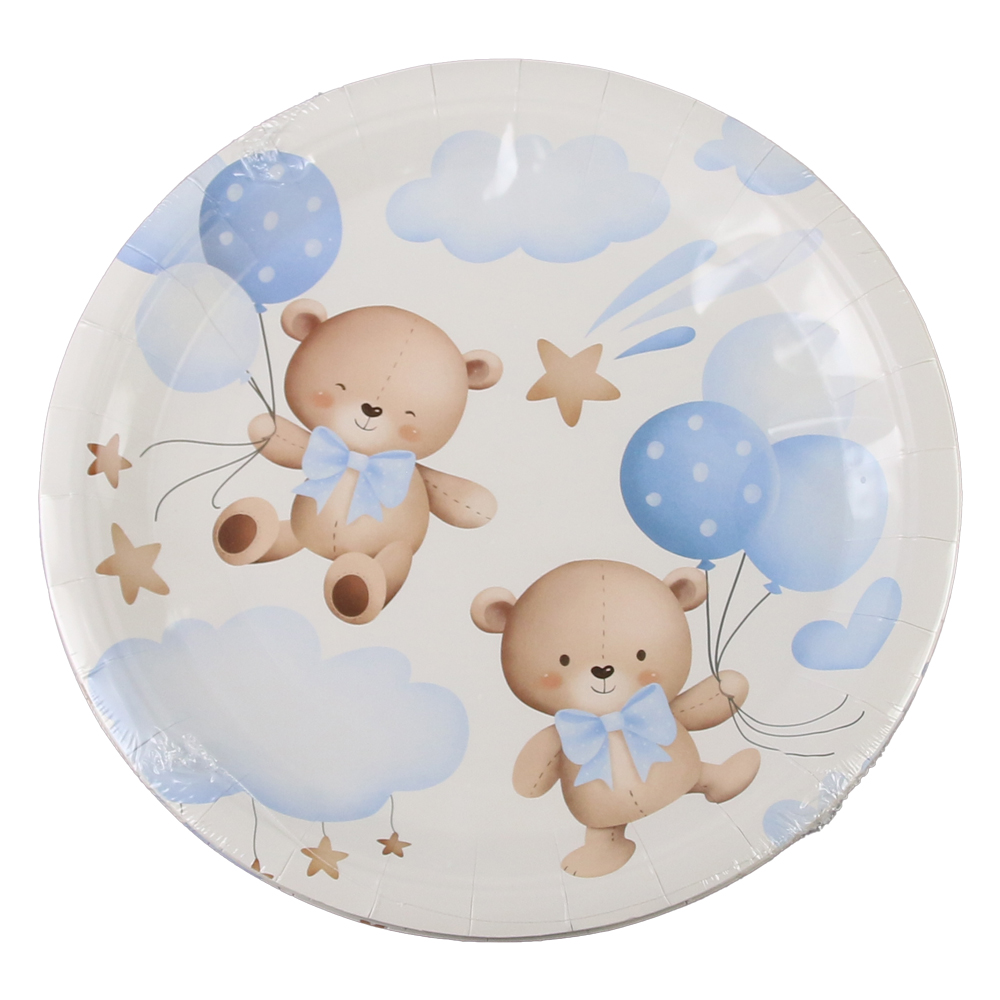 Set de 10 farfurii din hartie, 12 cm, cu design ursuleti. Ideal pentru petreceri, aniversari sau evenimente tematice pentru copii.