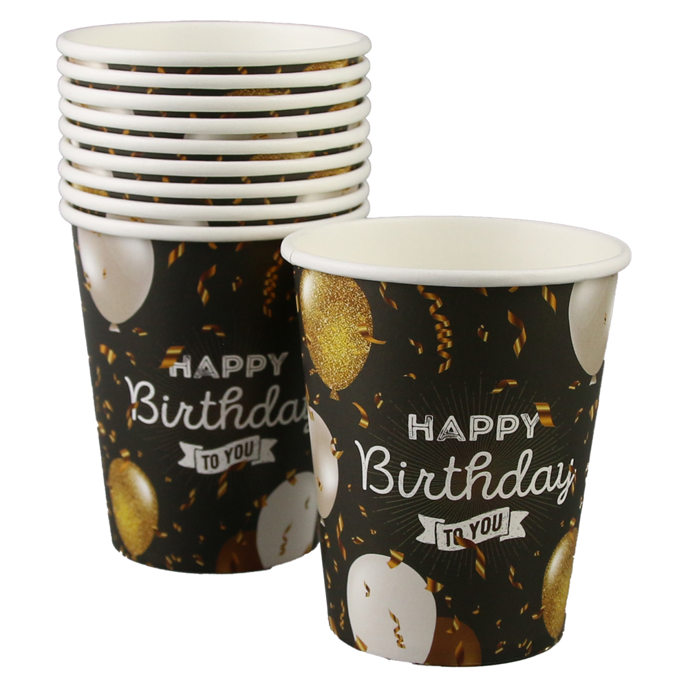 Set 10 pahare hartie party, 200 ml, „Happy Birthday to you”, cu baloane