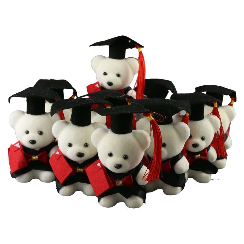 Set de 10 ursuleti din plus pentru absolventi, fiecare cu toca si diploma, inaltime 11.5 cm, culoare alba. Ideali pentru cadouri sau decor la evenimente de absolvire.