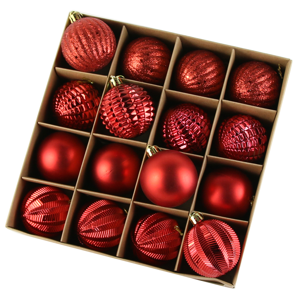 Set 16 globuri pentru brad, din plastic, 6 CM, culori variate