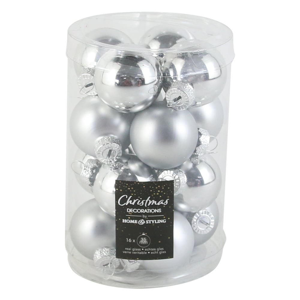 Set 16 globuri pentru brad din sticla 3.5 CM, Argintiu