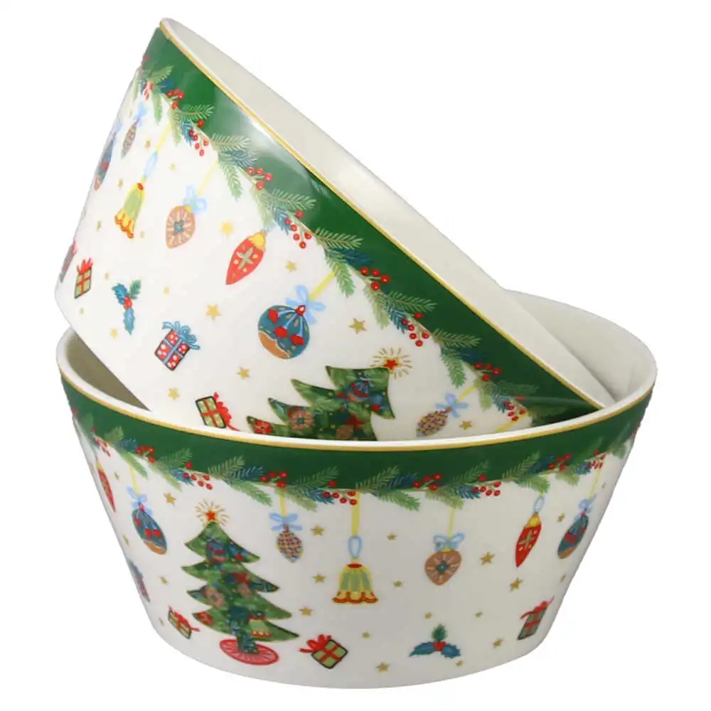 Set 2 boluri din portelan, Around Christmas Tree, 700 m, in cutie decorativa, Brad de Craciun