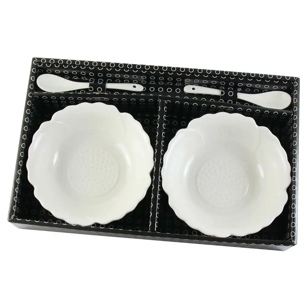 Set 2 boluri din portelan cu lingurite, White, M. 122