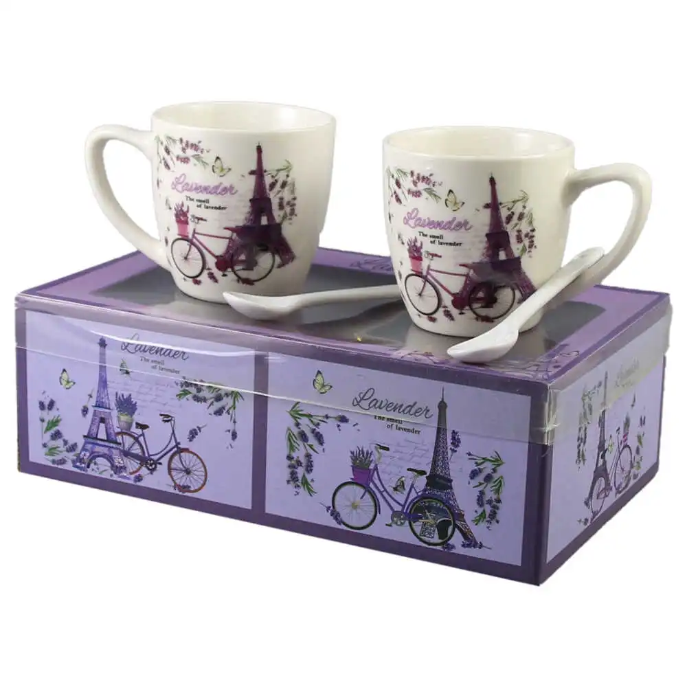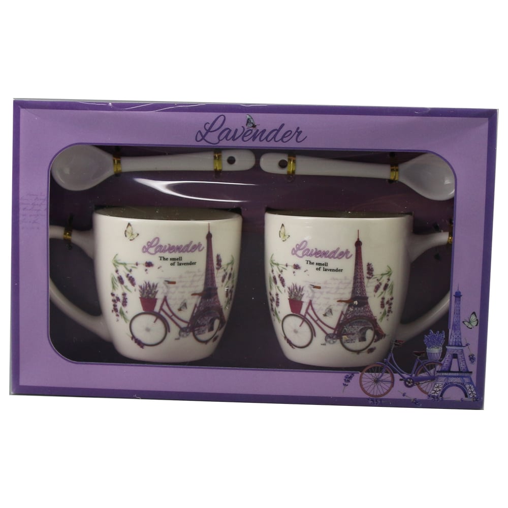 Set 2 cani cu lingurite, din ceramica „Lavender”, 200 ml, Bicicleta