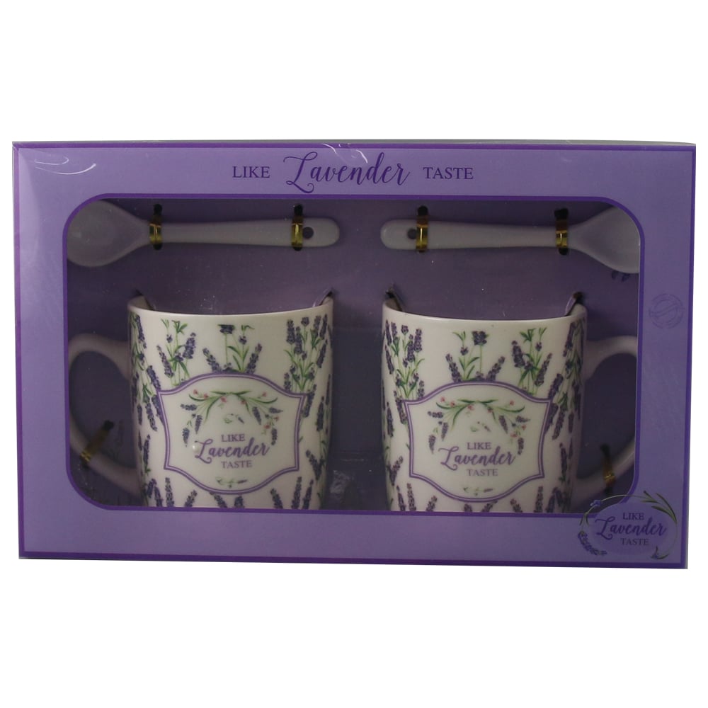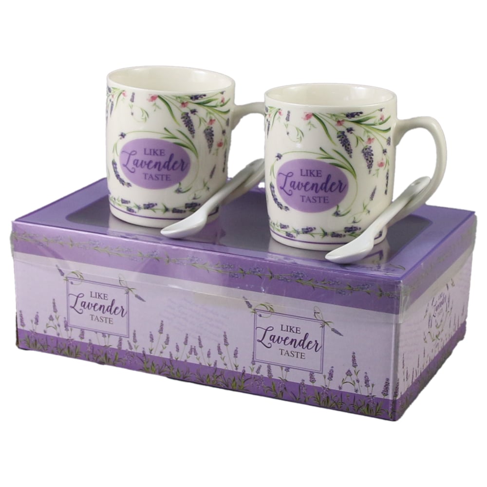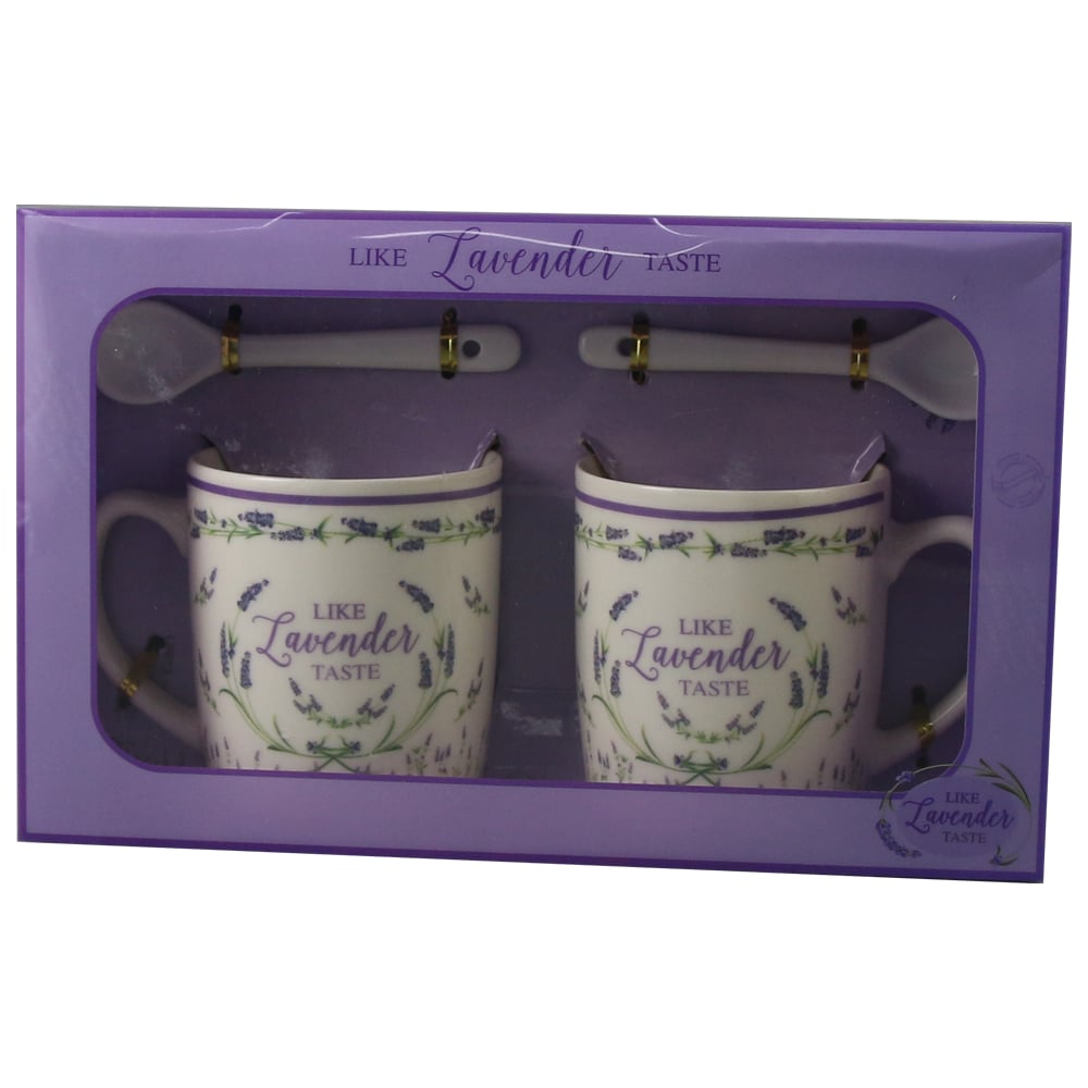Set 2 cani cu lingurite, din ceramica „Like Lavender Taste”, 200 ml