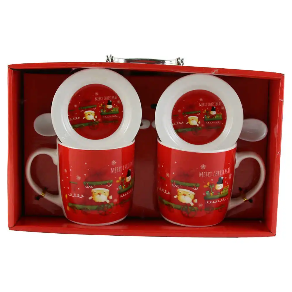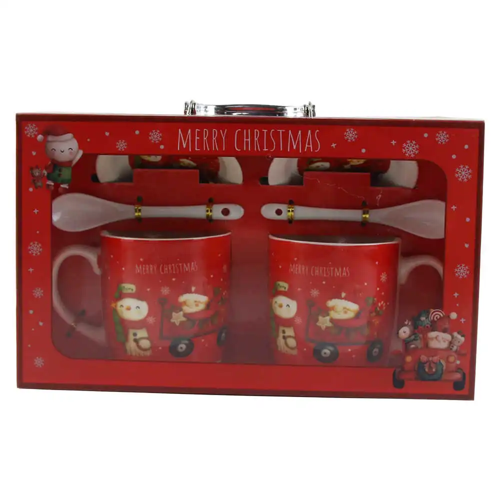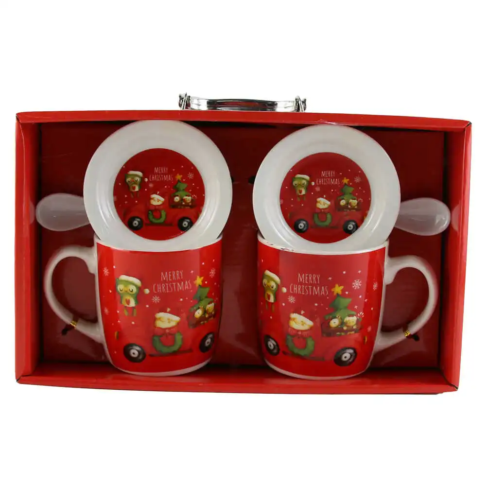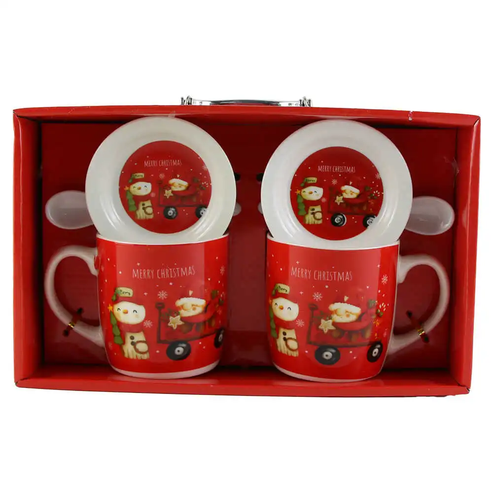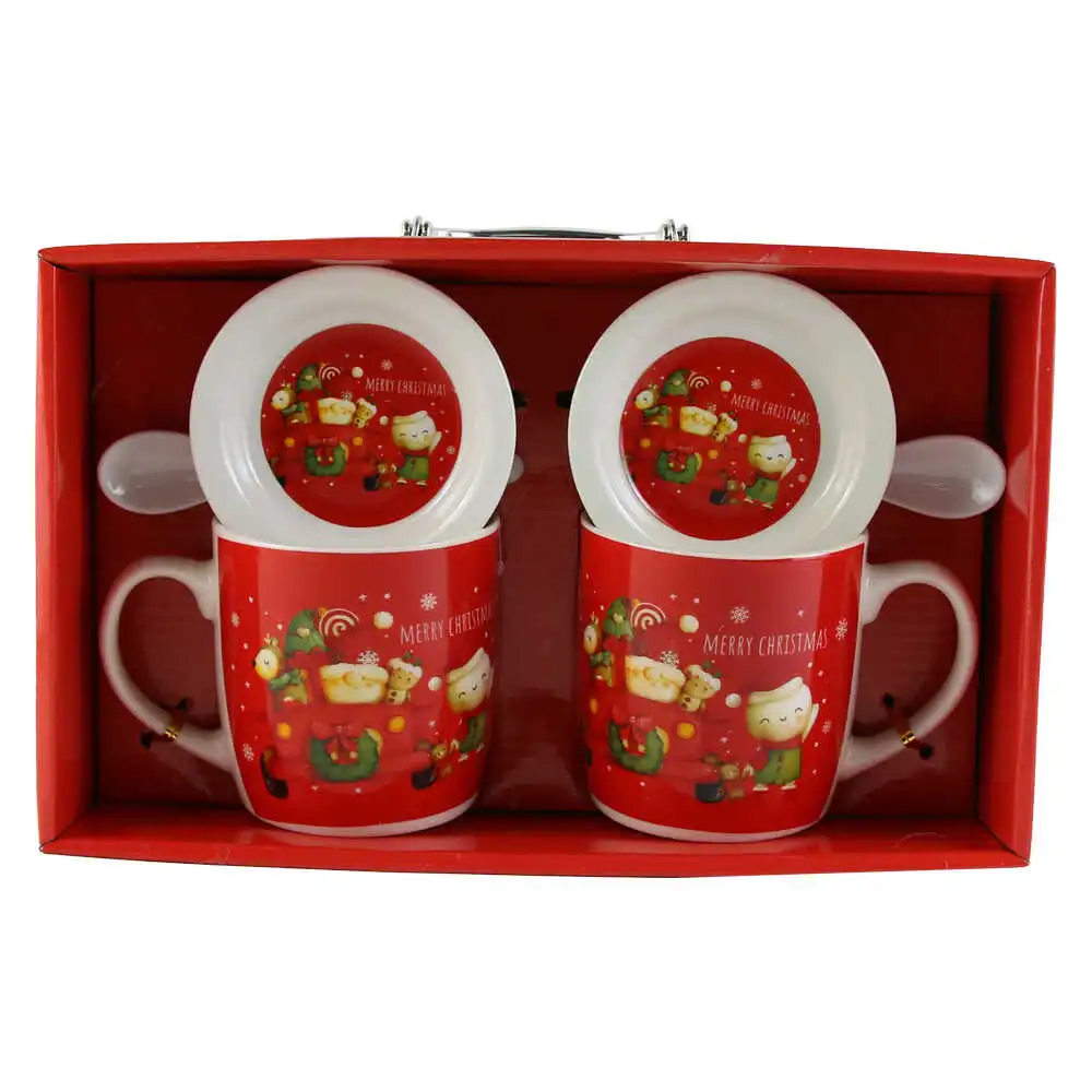 Set 2 cani de Craciun cu farfurii si lingurite, „Merry Christmas”, 9 CM, Spiridusi