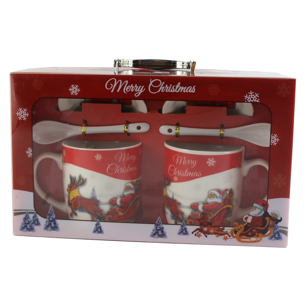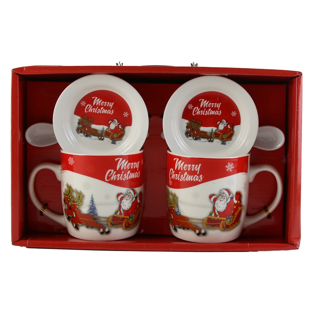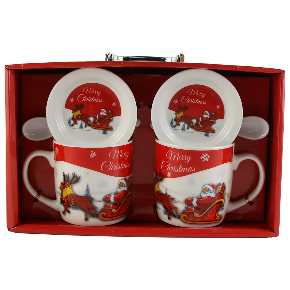 Set 2 cani de Craciun cu farfurii si lingurite, „Merry Christmas”, Mos cu sanie