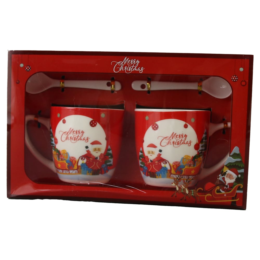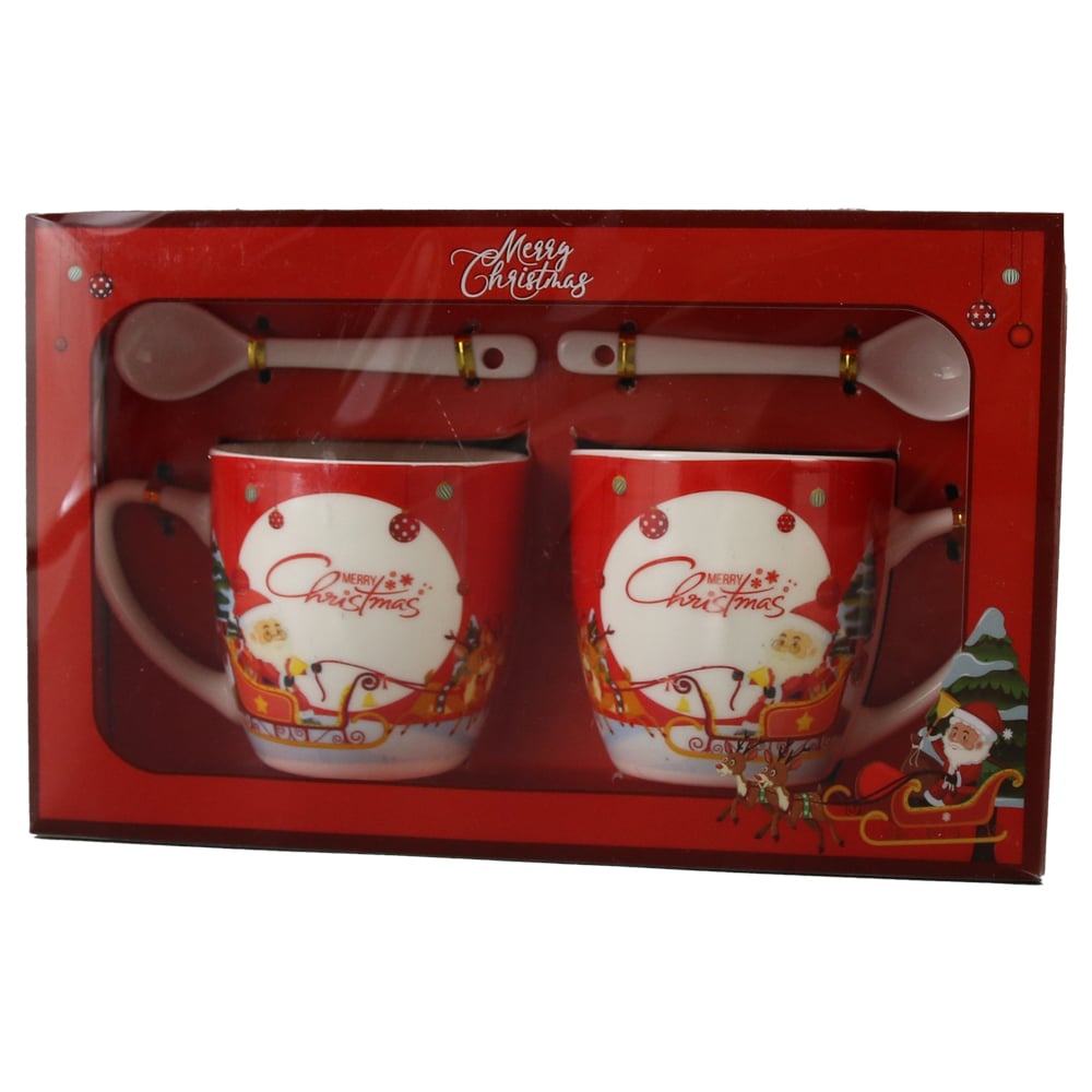 Set 2 cani de Craciun cu lingurite, 150 ml, „Merry Christmas”, Mos cu sanie