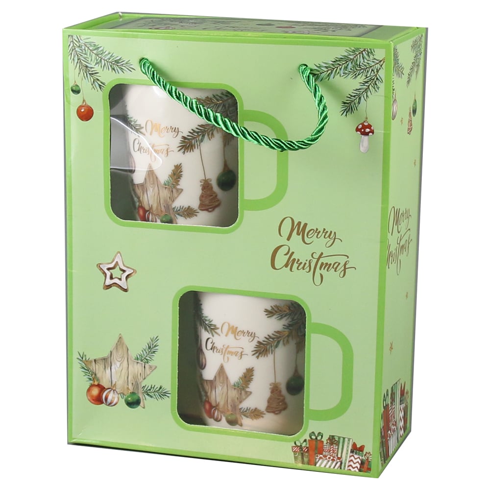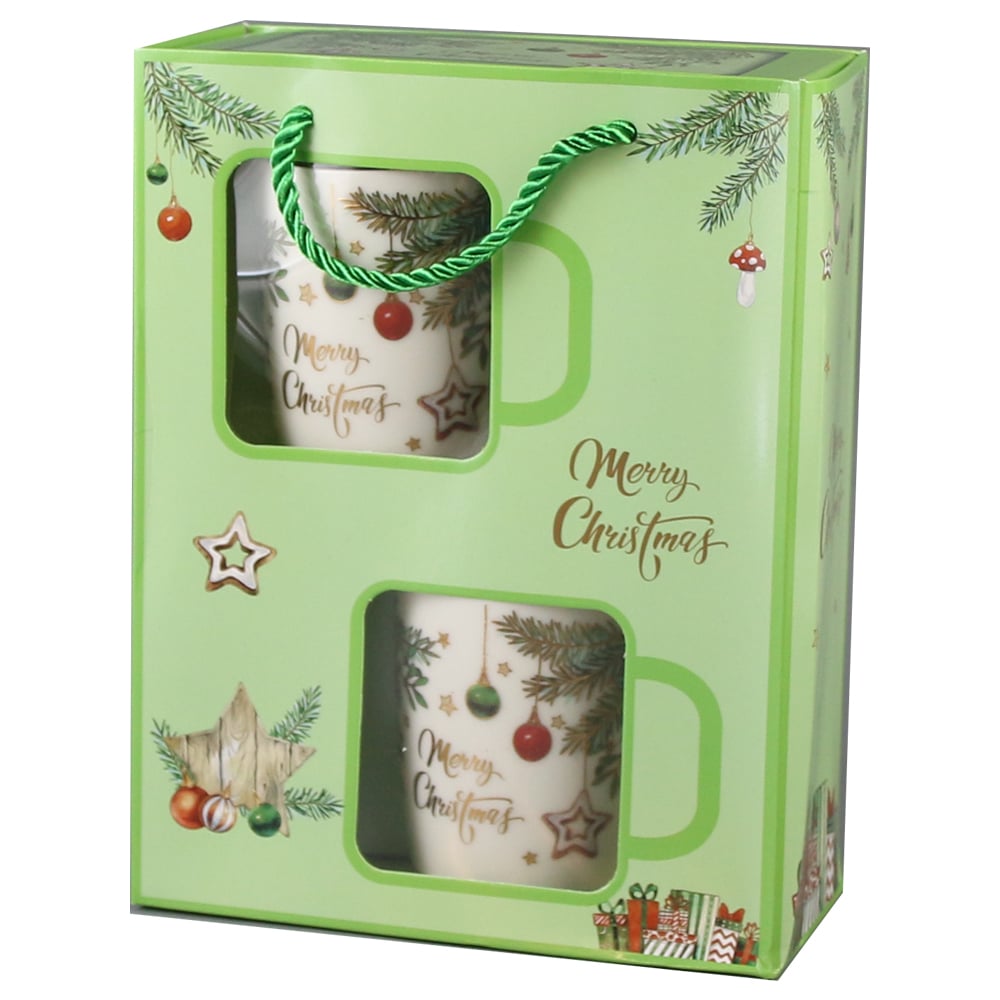 Set 2 cani de Craciun cu lingurite, 200 ml, „Merry Christmas”, Brad de Craciun