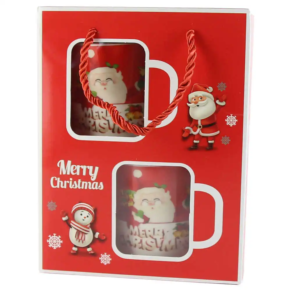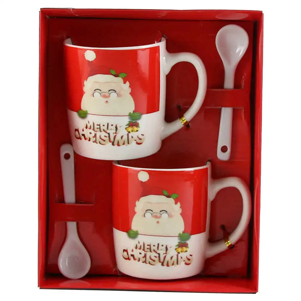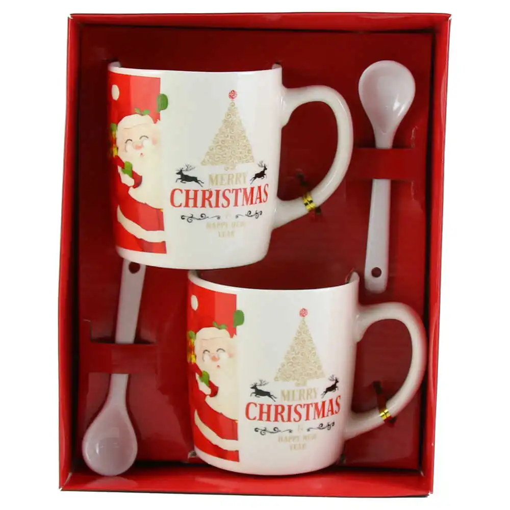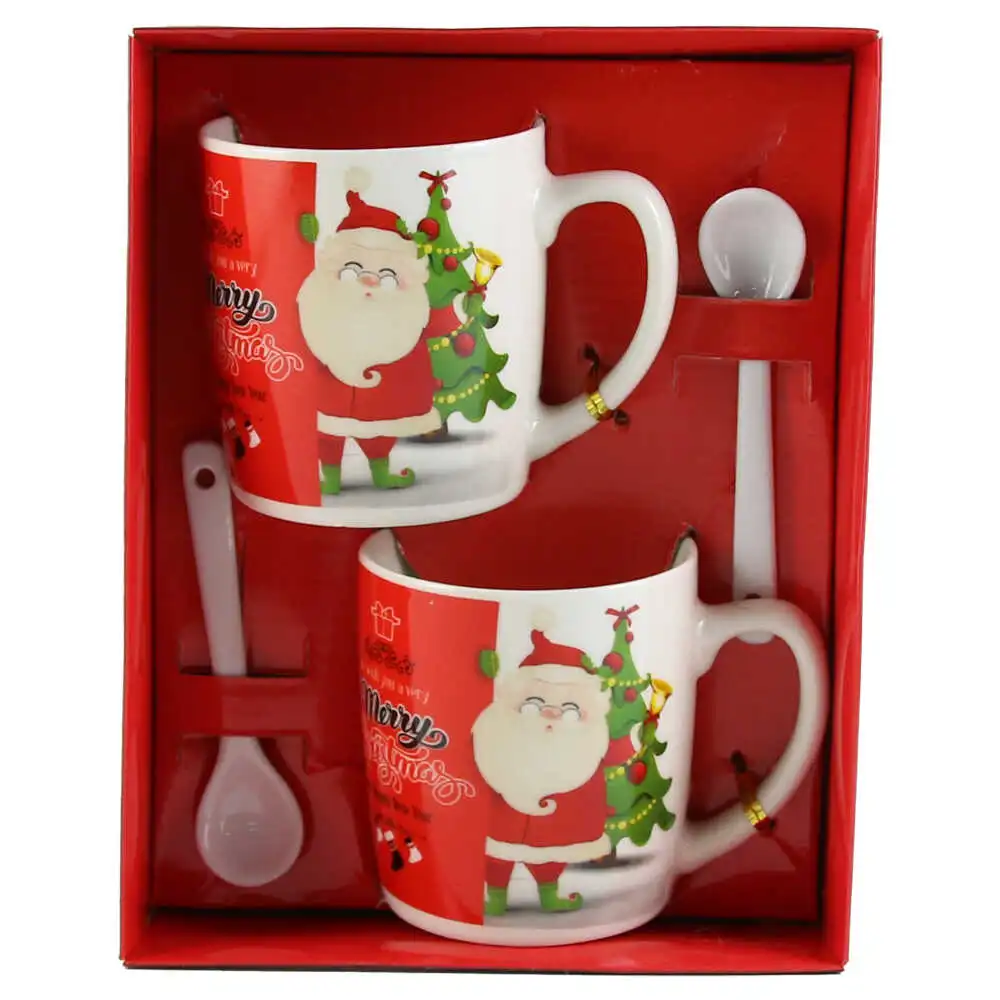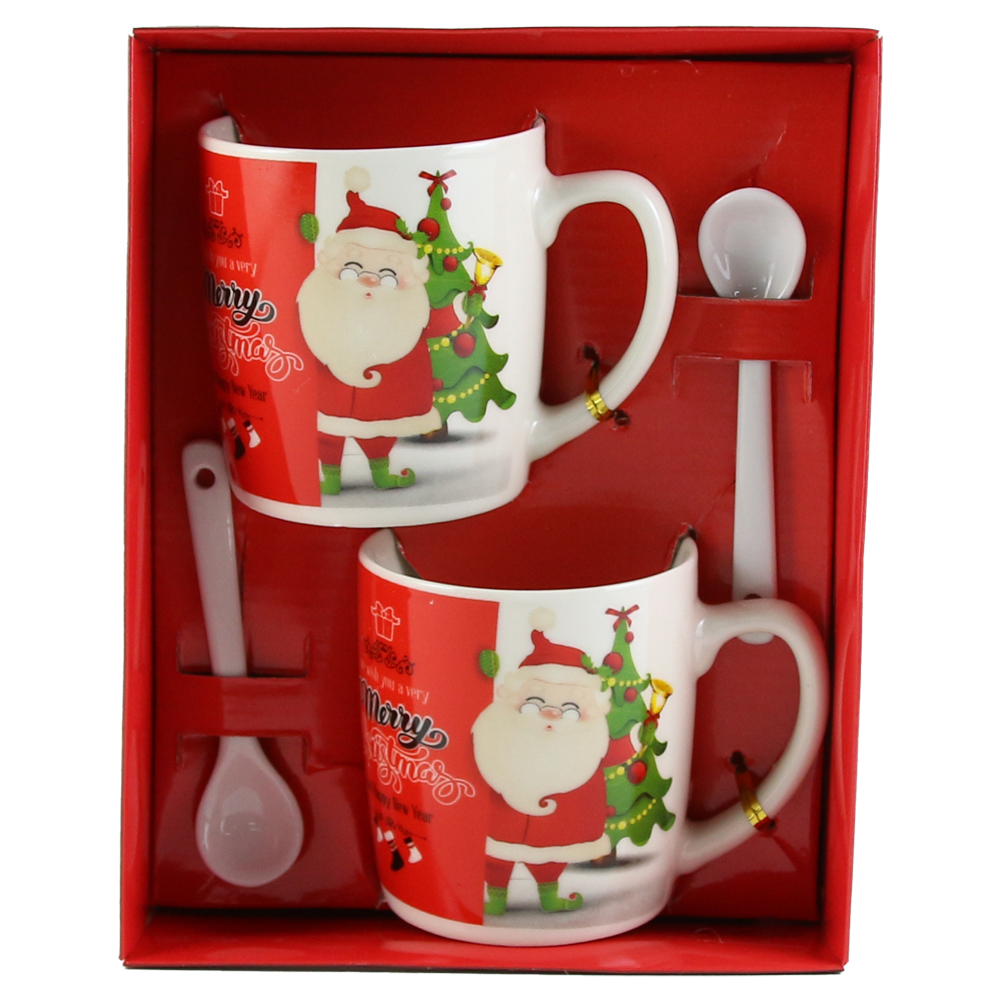 Set 2 cani de Craciun cu lingurite, „Merry Christmas”, Mos cu brad