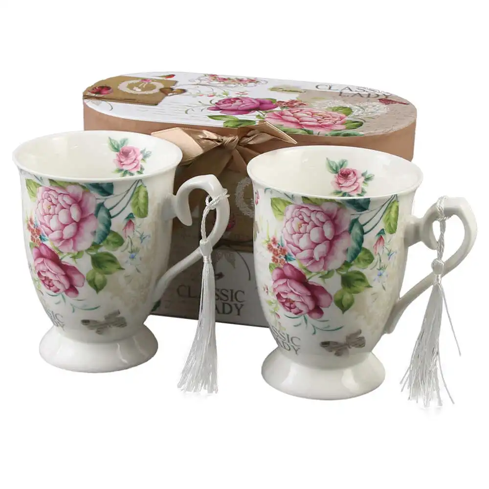 Set 2 cani din ceramica, cu franjuri, 300 ml, „Classic Lady”, in cutie decorativa