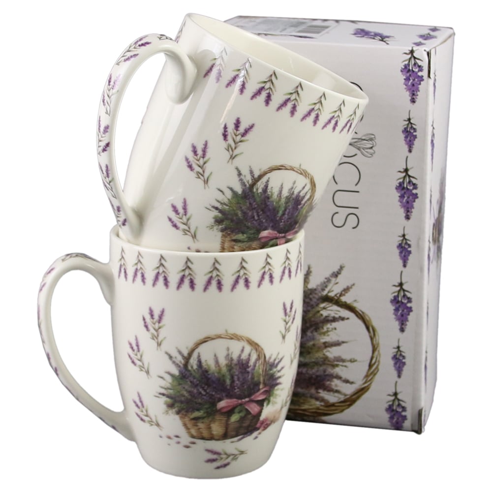 Set 2 cani din portelan 350 ml „Basket of Flowers-Lavanda”, in cutie decorativa