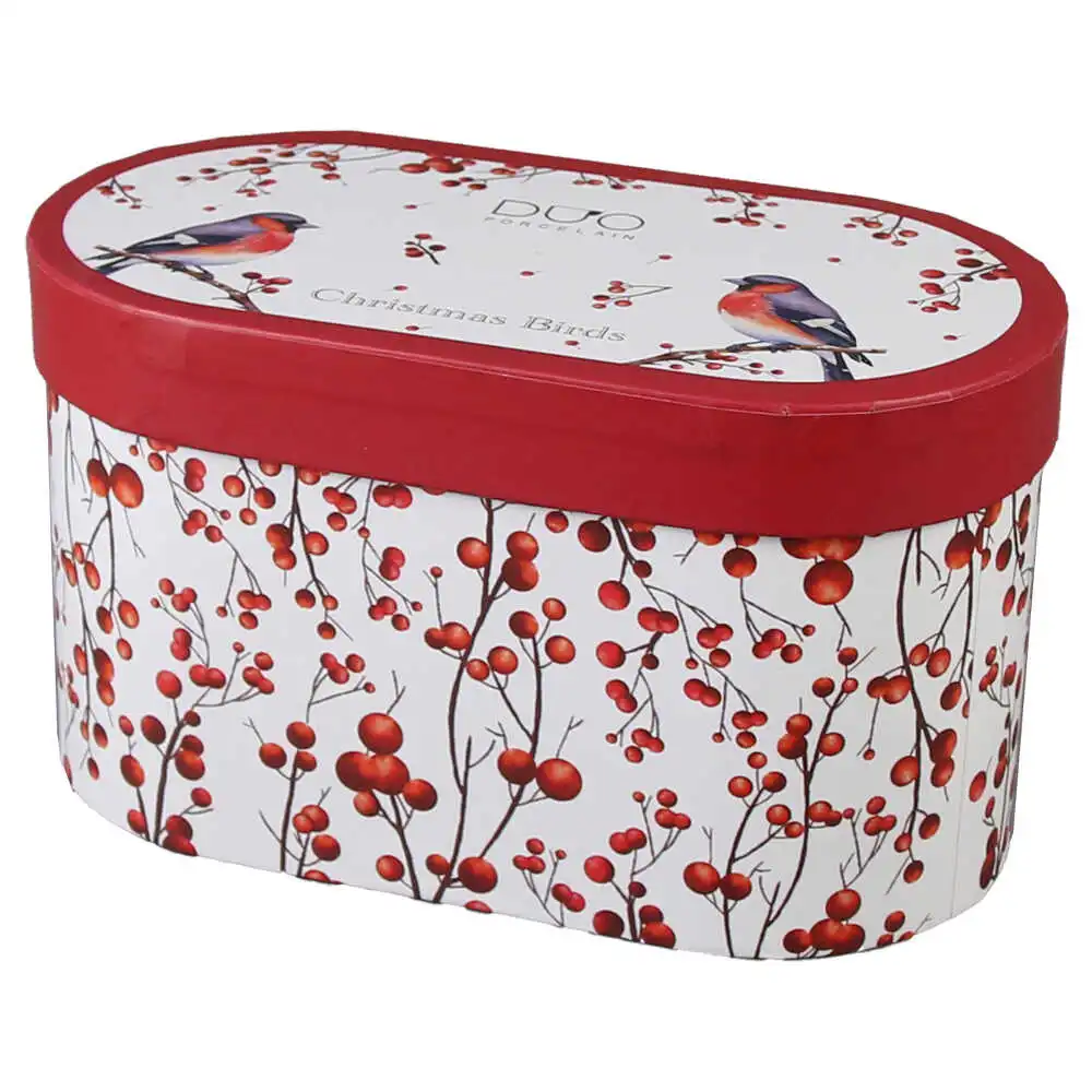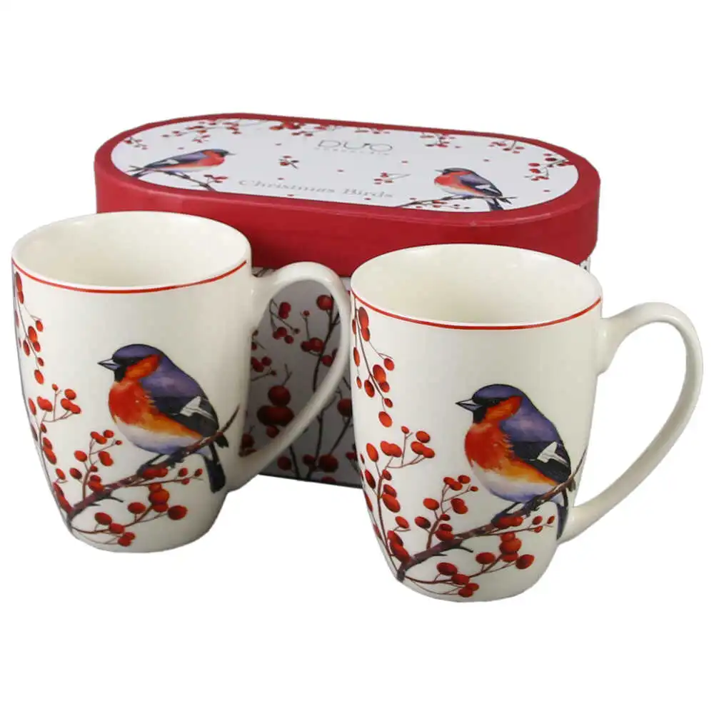 Set 2 cani din portelan, Christmas Birds, 360 ml, in cutie decorativa, Pasari de Craciun