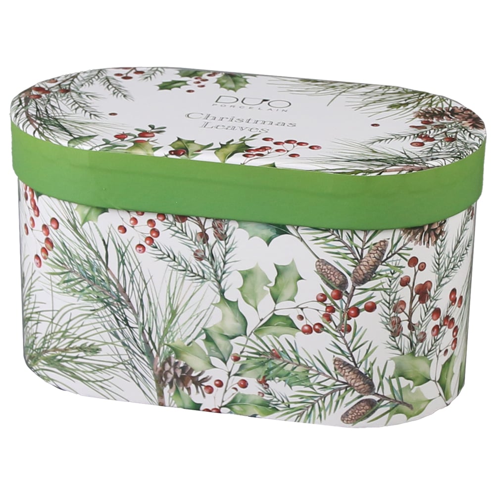 Set 2 cani din portelan, Christmas Leaves, 360 ml, in cutie decorativa, Frunze de Craciun