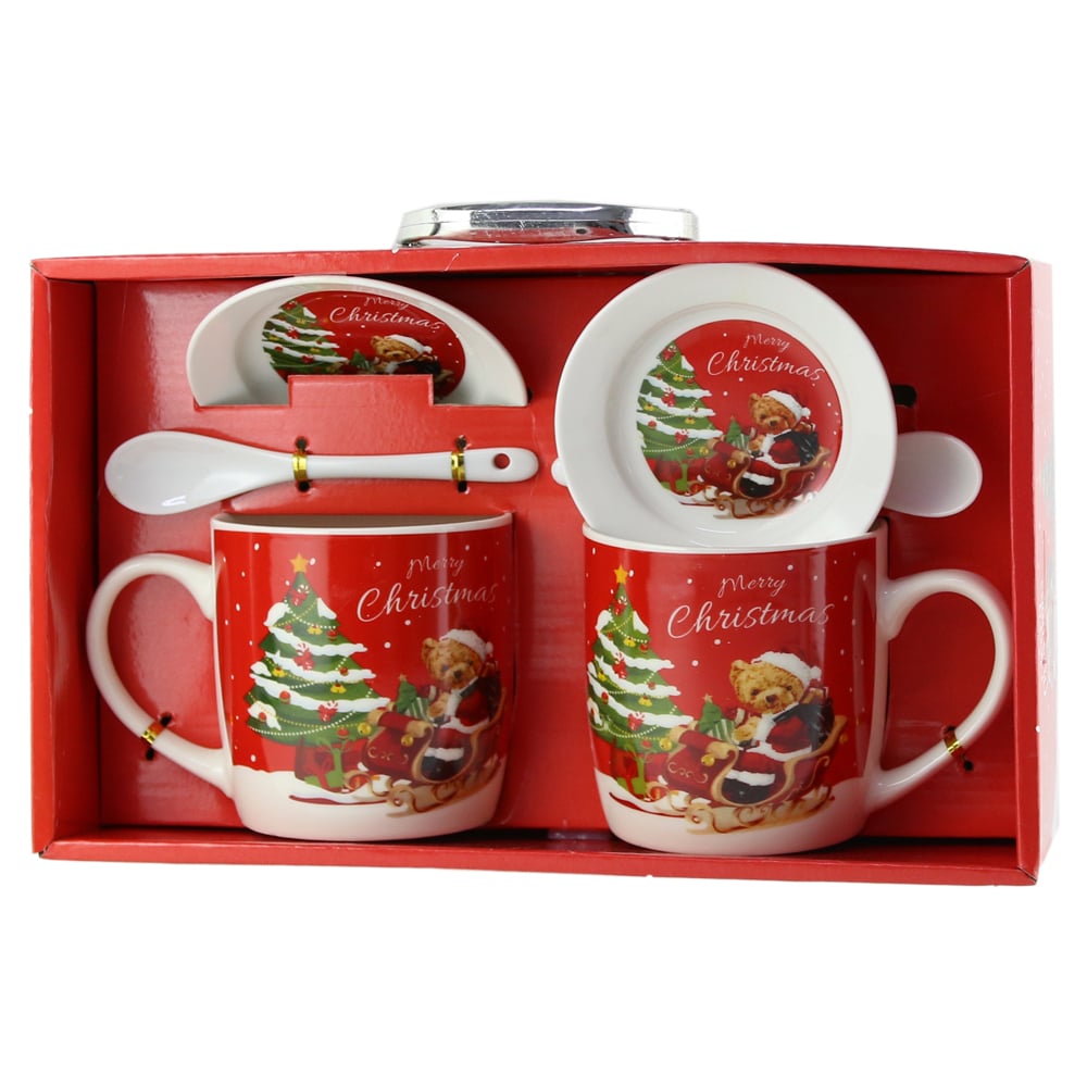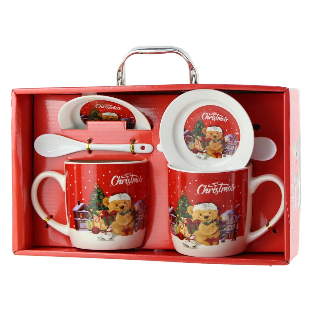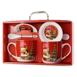 Set 2 cani, farfurii si lingurite 330 ml, „Merry Christmas”, Ursulet, in cutie decorativa