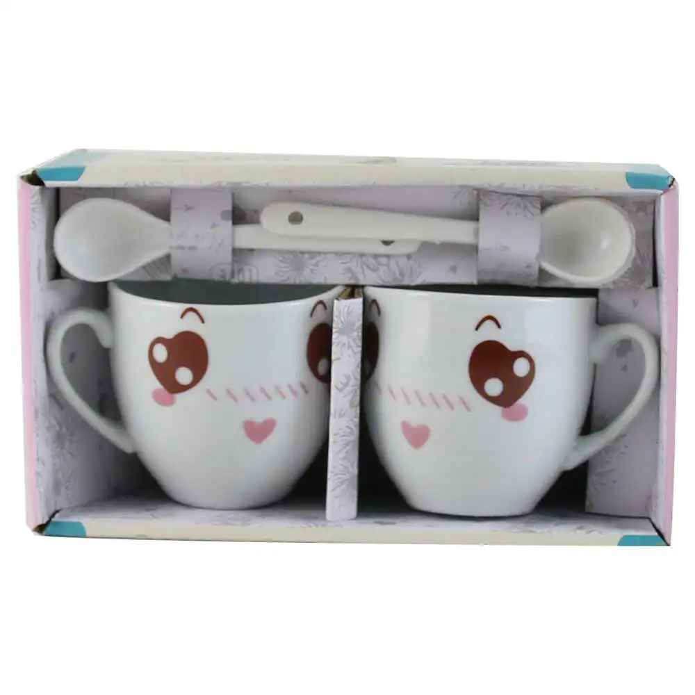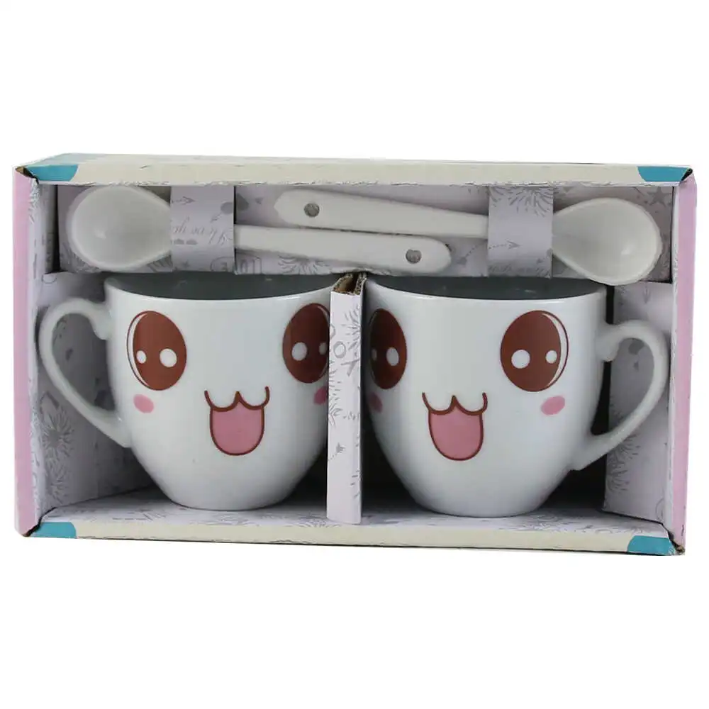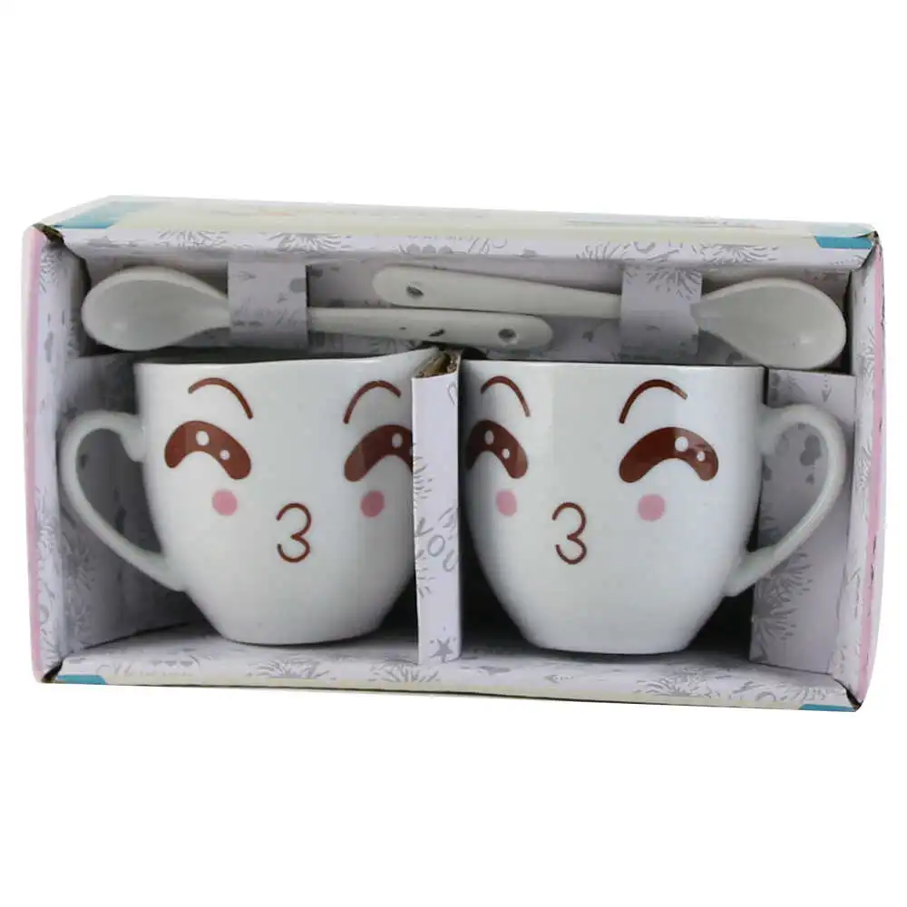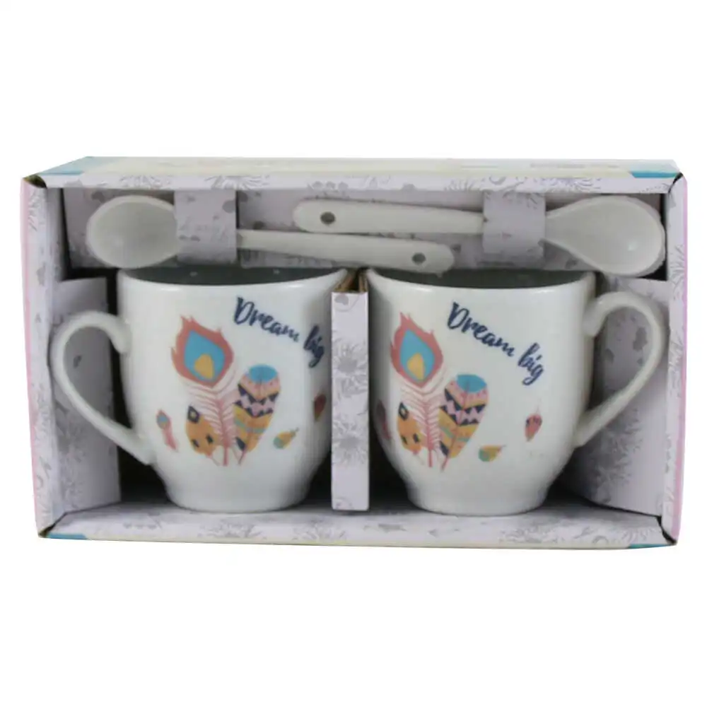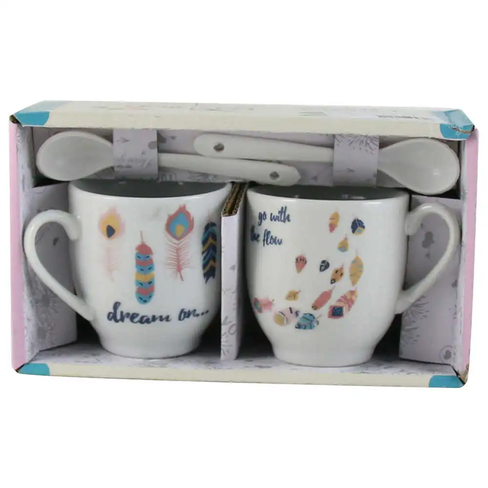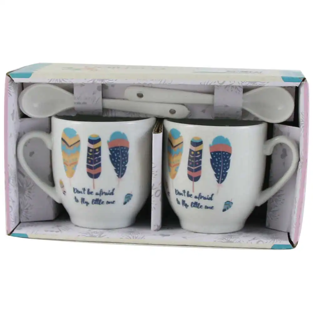 Set 2 cesti 80 ml, din ceramica, cu lingurite Pene/Fata”