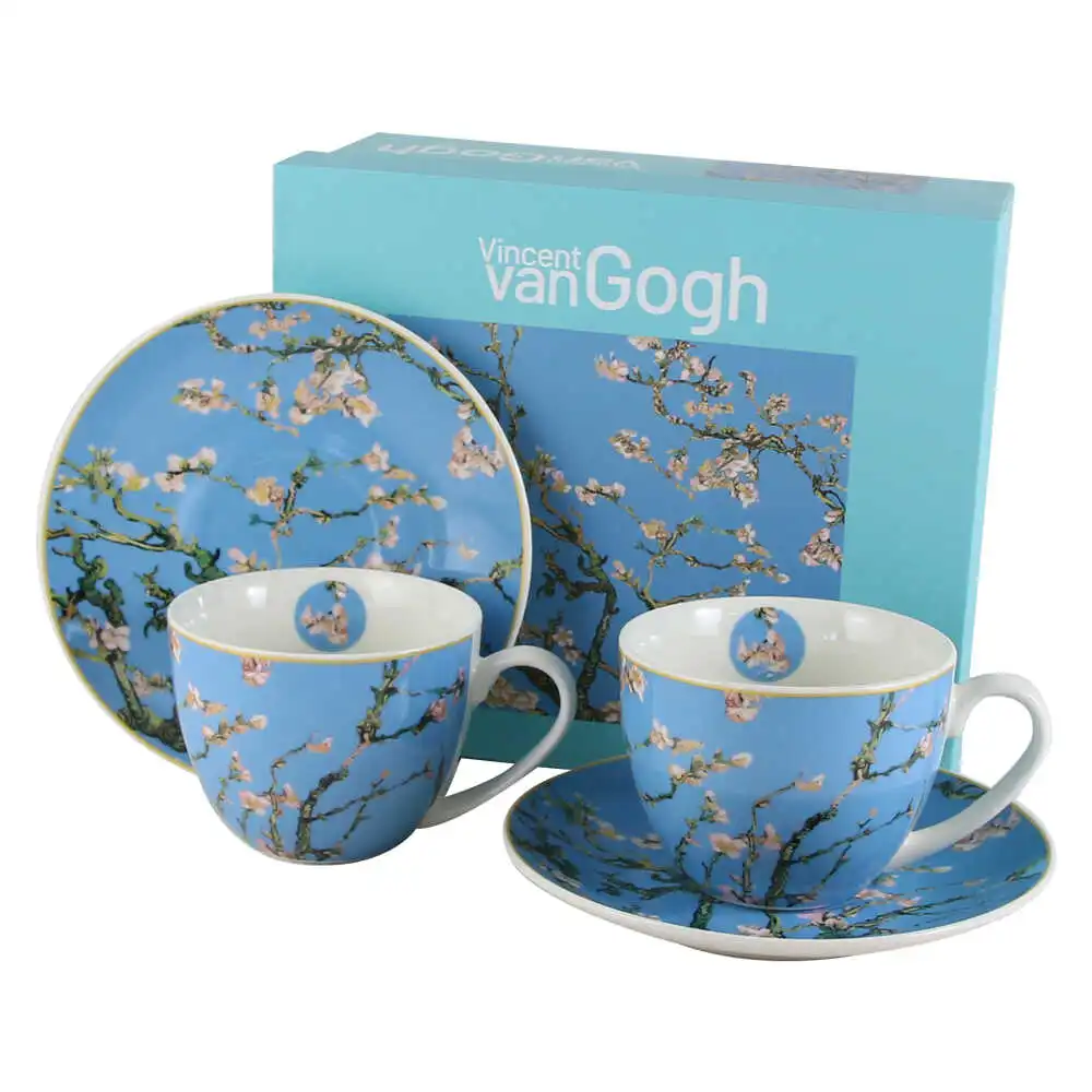 Set 2 cesti cu farfurii din portelan 270 ml „Almond Blossom”de V. van Gogh, in cutie decorativa