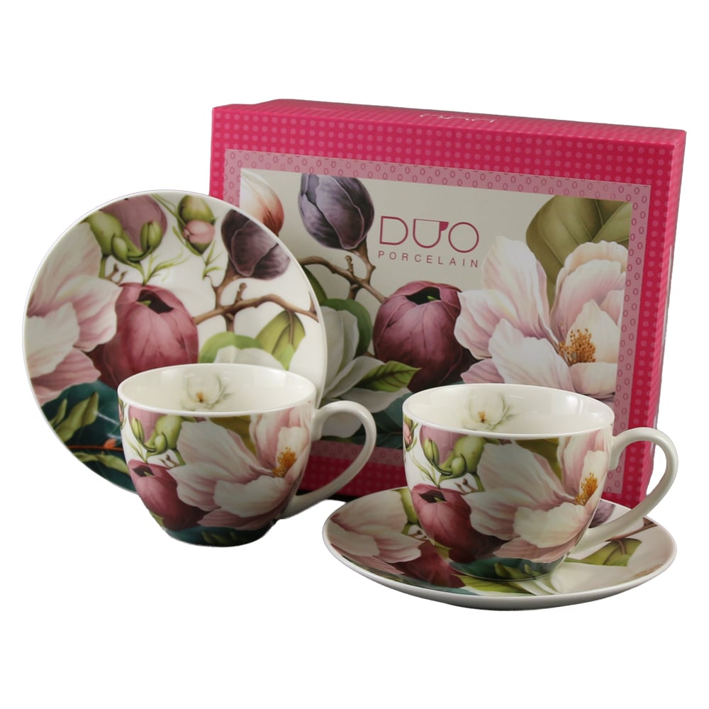 Set 2 cesti cu farfurii din portelan 270 ml „Magnolie” in cutie decorativa