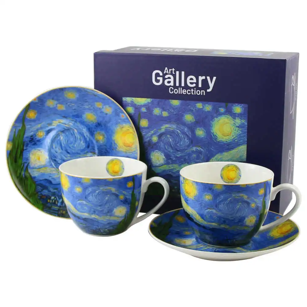 Set 2 cesti cu farfurii din portelan 270 ml „Starry Night” de V. van Gogh, in cutie decorativa