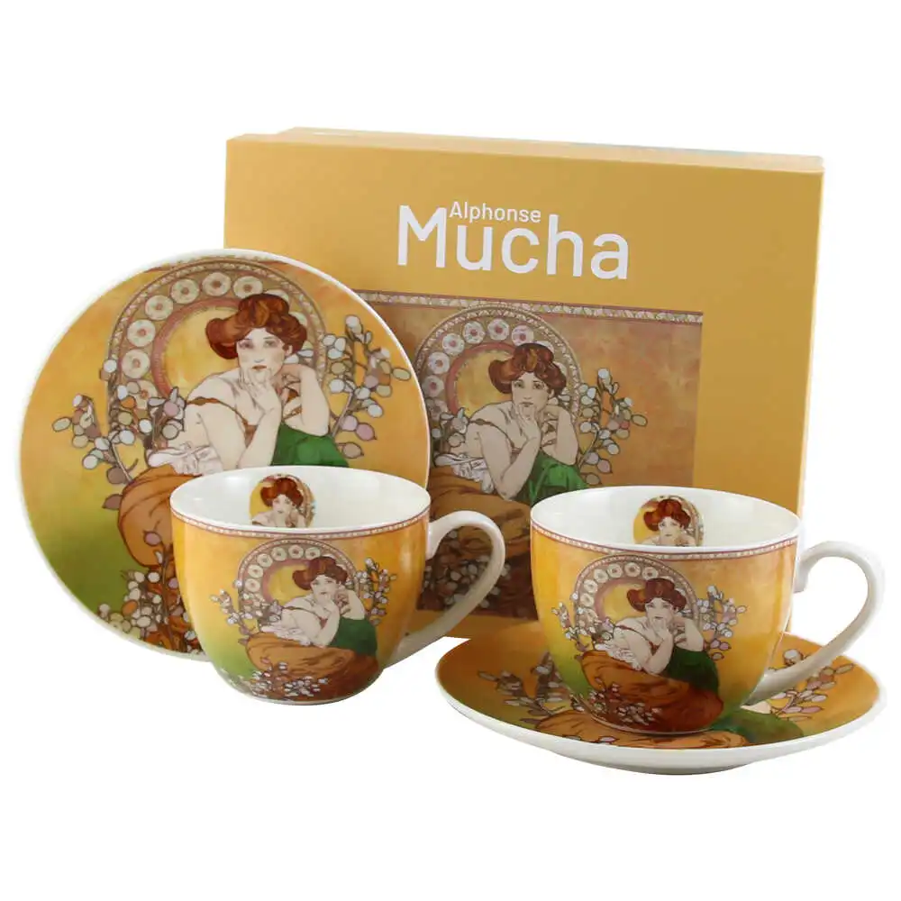 Set 2 cesti cu farfurii din portelan 270 ml „Topaz”, de A Mucha, in cutie decorativa