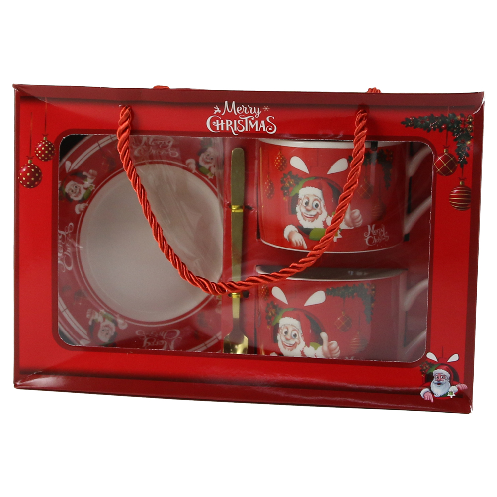 Set 2 cesti de Craciun cu farfurii si lingurite, „Merry Christmas”, Mos Craciun