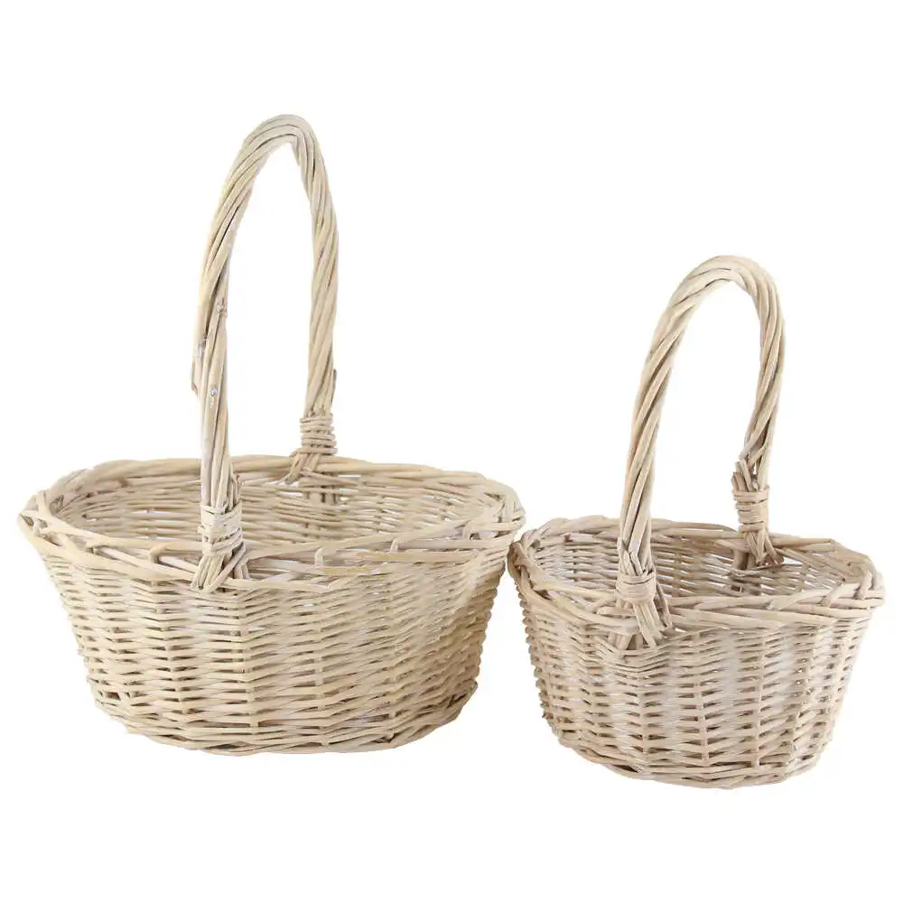 Set 2 cosuri din rachita cu manere, Alb