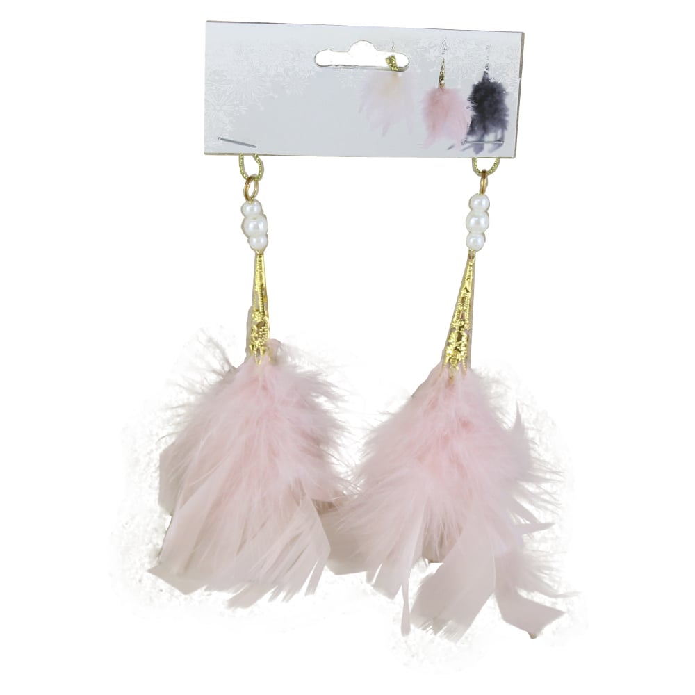 Set 2 ornamente brad cu pene si margele 20 CM – Roz/Alb