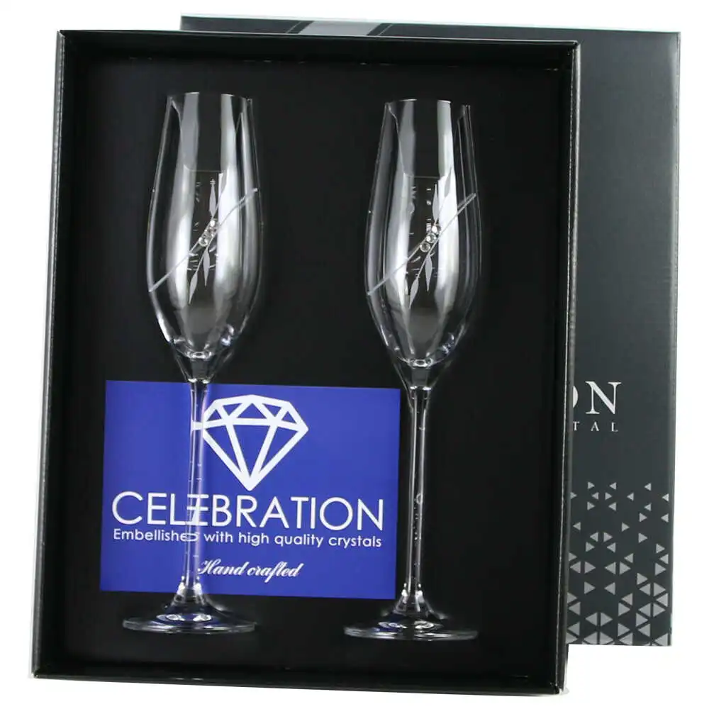 Set 2 pahare sampanie, 210 ml, cu cristale Swarovski, Celebration, 2K