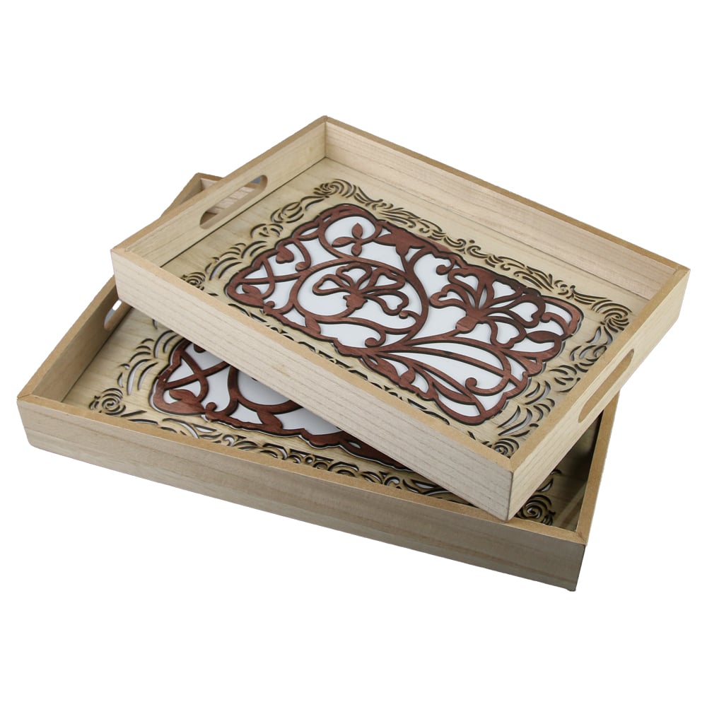 Set 2 tavi servire din lemn si sticla 40×30/ 35×25 CM, cu motive florale