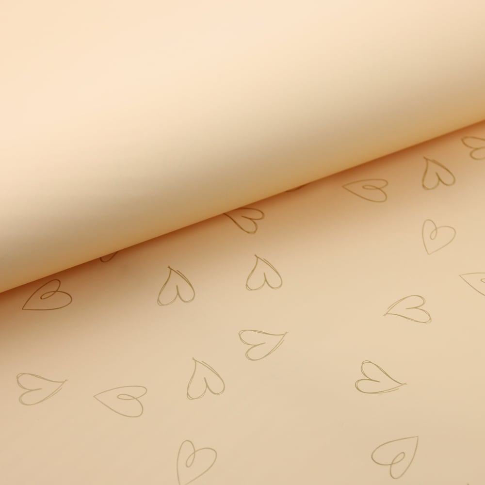 Set 20 coli ambalaj flori din plastic, 58×58 cm, culoare piersica cu inimioare aurii, pentru buchete si aranjamente florale