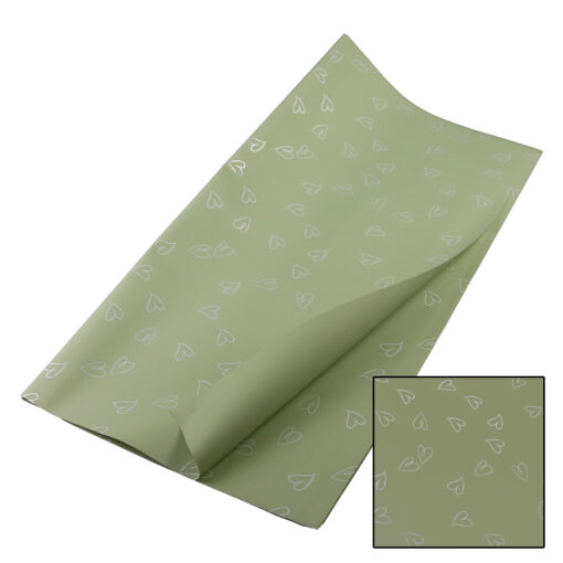 Set format din 20 coli pentru ambalarea florilor, realizate din plastic, cu dimensiunile de 57 x 57 cm, model verde cu inimioare. Ideal pentru florarii, aranjamente florale sau ambalarea buchetelor.