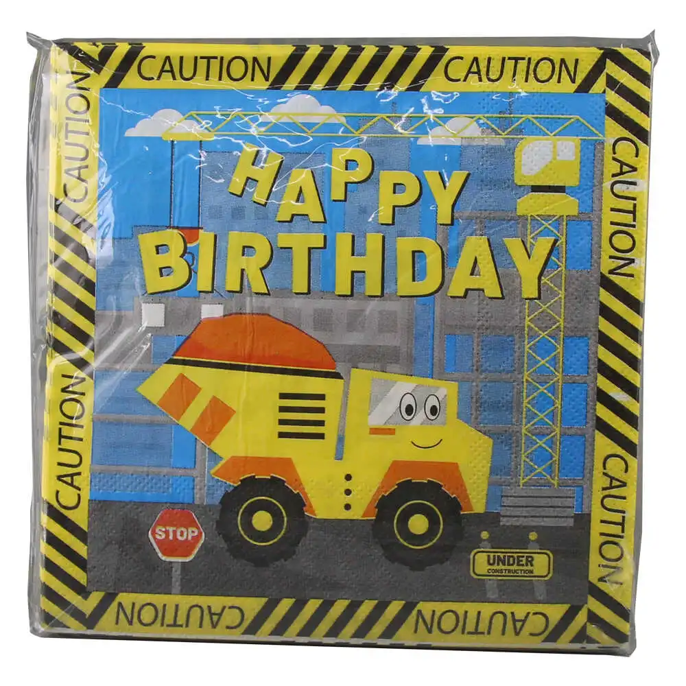 Set de 20 servetele din hartie, cu design masina constructie. Ideal pentru petreceri si aniversari pentru copii pasionati de utilaje si constructii.