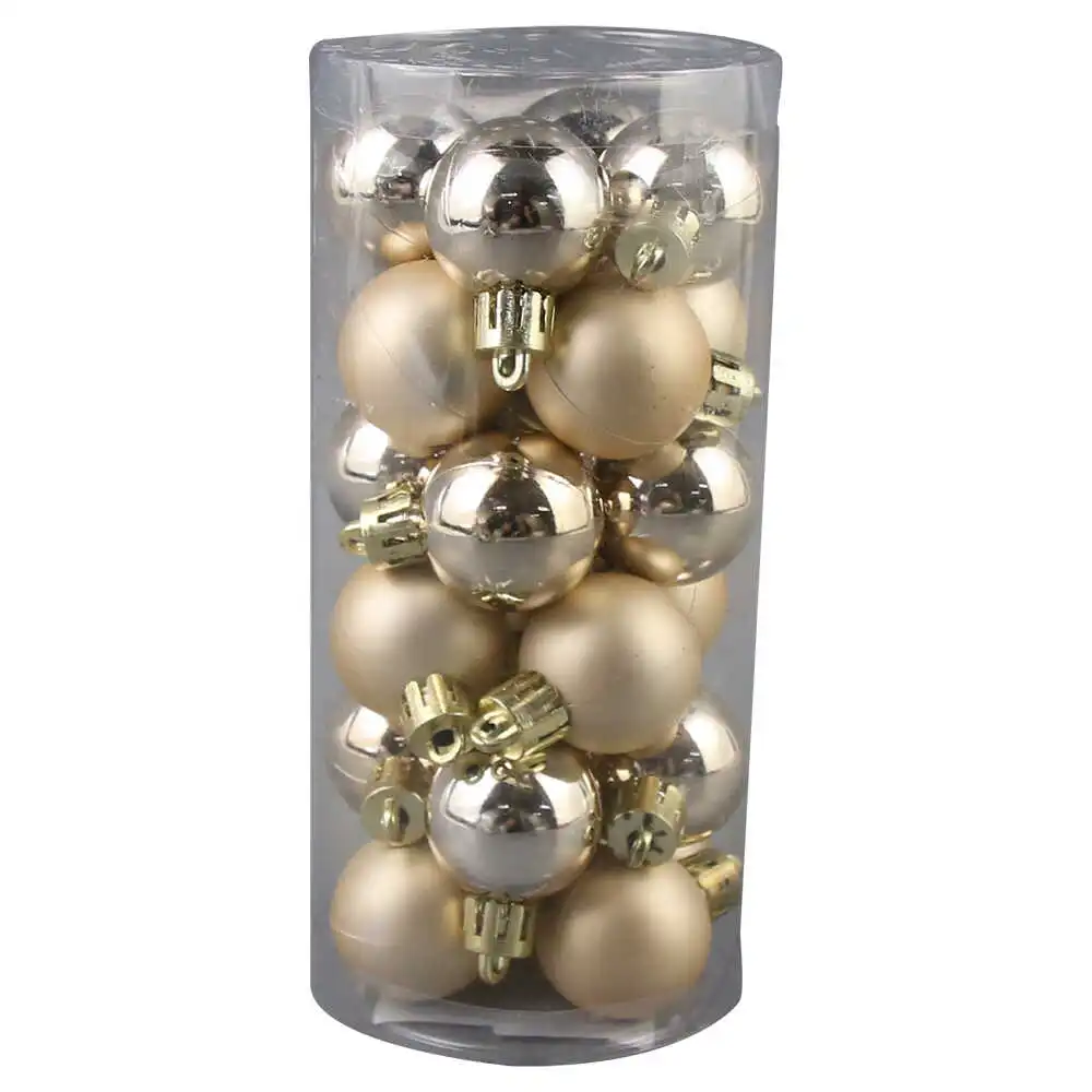 Set 24 globuri din plastic 3 CM, Crem/Auriu