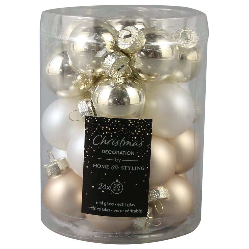 Set 24 globuri pentru brad, din sticla 2.5 CM, Crem/auriu