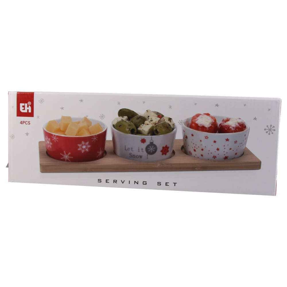 Set 3 boluri cu suport bambus 28.5×10 CM