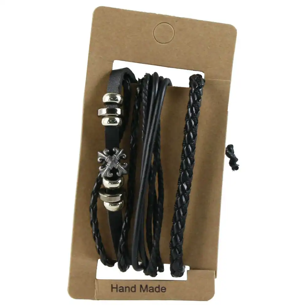 Set 3 bratari pentru barbati din piele sintetica, negru